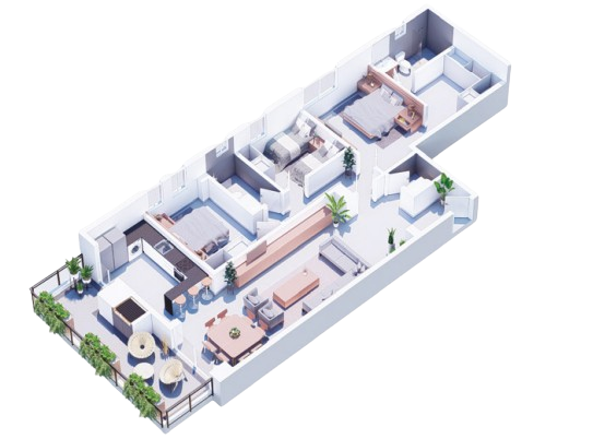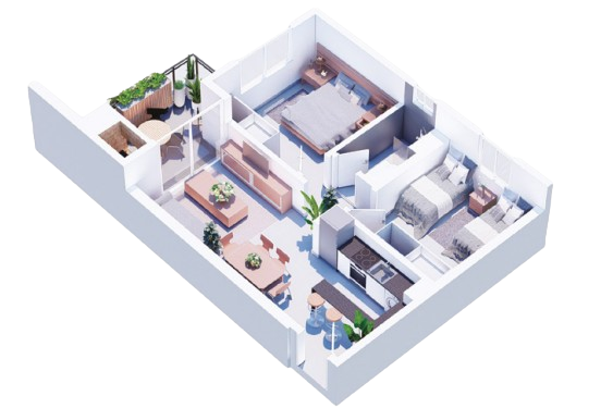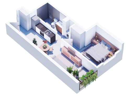Ofrecemos unidades residenciales que van desde 1 hasta 3 habitaciones, incluyendo exclusivos penthouses con amplios espacios.